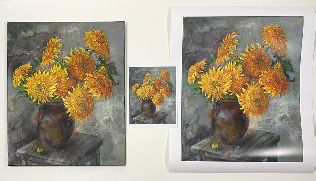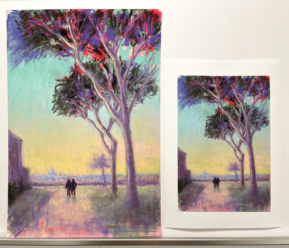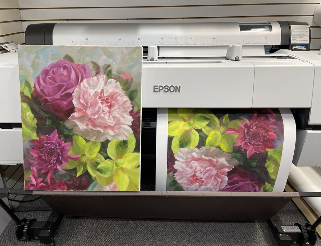 Note: The giclee process uses ink printed on paper or canvas that will most likely look slightly different than your oil, acrylic, watercolor, pastel, etc. original art. Paper choice also produces a different look than your original substrate. Giclees are beautiful reproductions, but not originals.