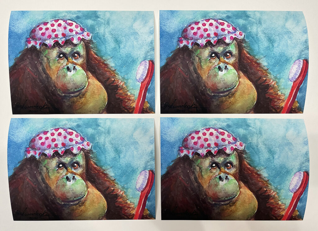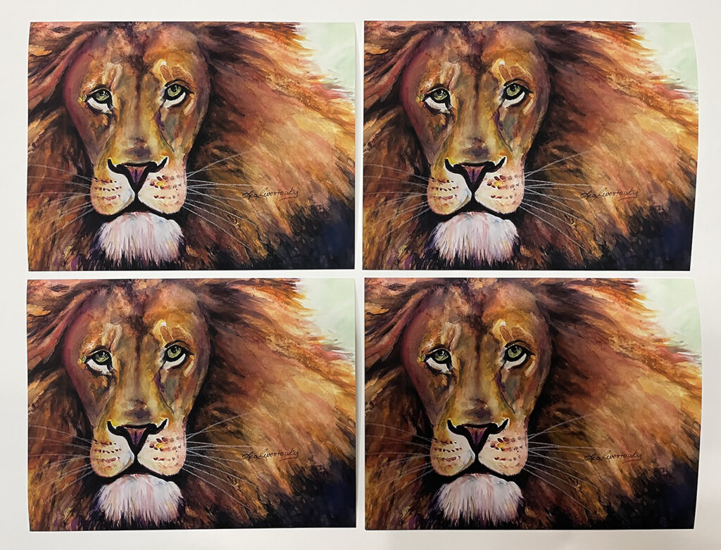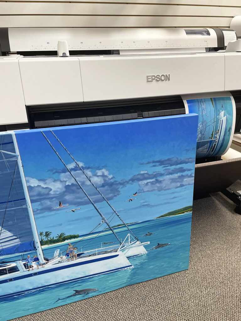 Next, we produce a beautiful giclee, on your choice of archival paper or canvas. You may order as many or as few as you wish. This method allows you to sell multiples of your artwork, again and again, at a reduced price of the original.